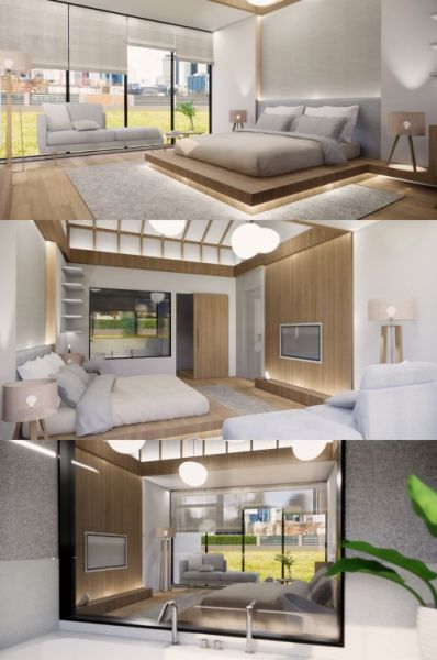 我们不想让主卧太封闭,所以我们决定保留挑空的空间,并通过木制线条强化这个有趣的地方。