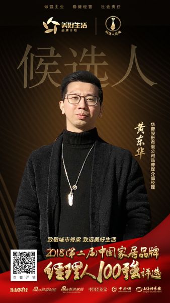 恭喜华帝股份有限公司品牌媒介部经理黄东华先生提名2018中国家居品牌经理人100强评选。
