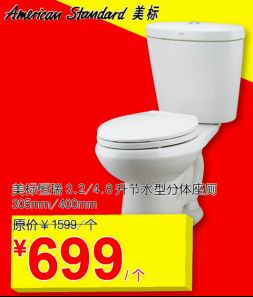 美标恒瑞3.2/4.8升节水型分体座厕,原价1599元/个,活动期间直降900元,699元即刻带回家,感受生活中点滴的美好细节;