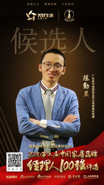 恭喜广东新中源陶瓷有限公司营销总经理陈勤显先生提名2018中国家居品牌经理人100强评选。
