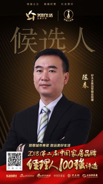 恭喜广东好太太科技集团股份有限公司营销总经理陈春先生提名2018中国家居品牌经理人100强评选。
