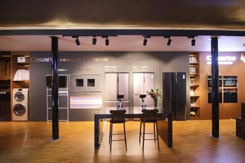 本次卡萨帝艺术生活馆通过打造6个艺术生活场景为用户呈现6大高端生活解决方案。艺术保鲜场景中,F+自由嵌入式冰箱为用户提供新鲜食材储存空间;艺术客厅、艺术书房中,天玺空调为用户提供生态自然风,卡萨帝酒柜、冰吧则为用户提供专业化、多样化的储酒、储鲜环境;艺术衣帽间中,卡萨帝“空气洗”为各类衣物提供精致呵护,娇贵的苏绣也能洗护如新;艺术浴室中,卡萨帝天沐套系和瀑布洗热水器为用户打造一站式高端用水体验;走进艺术厨房,卡萨帝成套嵌入式高端厨电提供整套高端烹饪解决方案。