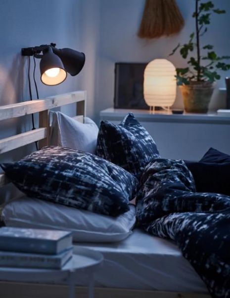 四、起床或者睡下时不想打扰到另一半,只需用遥控器和智能灯泡,在远处开关灯和调节明暗就可以了。在床上方安装壁式射灯,便可以按照需要调节照明方向。