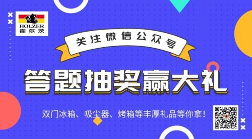 霍尔茨在线上设置了趣味知识问答环节,关注霍尔茨微信公众号,点击答题链接进行作答,此环节共设置8道有关装修和霍尔茨相关产品的题目,用户答对全部问题后,即可参与抽奖,每个ID每日可答题并抽奖1次。奖品丰厚实用,双门冰箱,大牌吸尘器,精美礼品等你拿!霍尔茨郑重承诺,所有奖品真实有效。