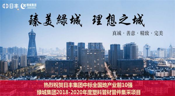 绿城集团作为中国领先的优质房产品开发及生活综合服务供应商,以优质的产品品质和服务品质引领行业,并连续14年荣获“中国房地产百强企业综合实力TOP10”、连续15年荣获“中国房地产公司品牌价值TOP10”。此次日丰企业集团成功续约绿城集团“2018-2020年度塑料管件管材集采项目”。