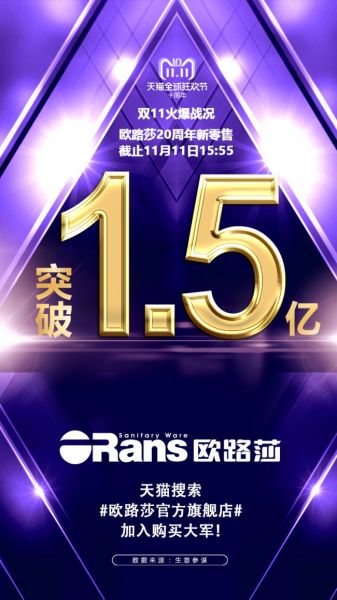 欧路莎成立于1998年,专注智能卫浴20年,今年是欧路莎卫浴发展的第20个年头。作为20周年生日,15时55分,破1.5亿,欧路莎卫浴不止是跻身“亿元俱乐部”,还为给广大消费者提供打造了一场狂欢盛惠。