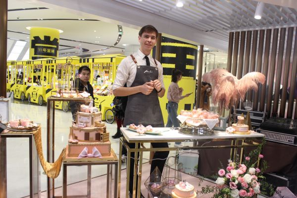 在舞台另一侧的甜品区,法籍甜品师Alexey亲手制作甜品的画面成了一道亮丽的风景。Alexey毕业于法国雷诺特顶级厨艺学院,曾获意大利里米尼的SIGEP的甜点冠军,以出色的才华和媲美男模的颜值,成为甜品界的新星,在世界各地都拥有一大波的粉丝。