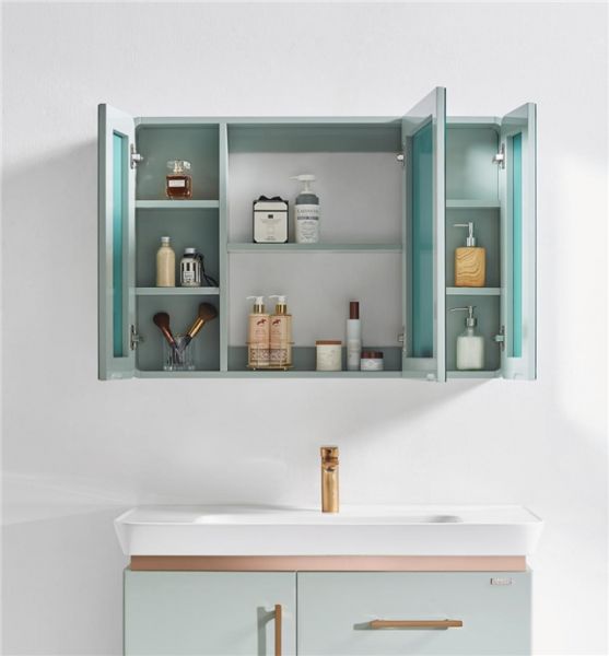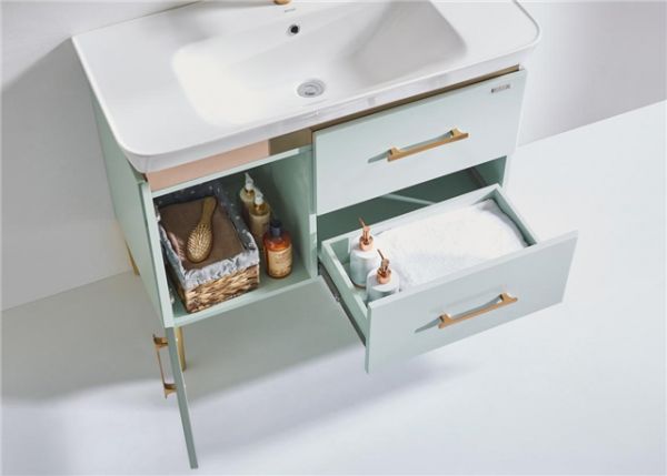 菲恩浴室柜双色搭配,玫瑰金与烟绿的时尚碰撞