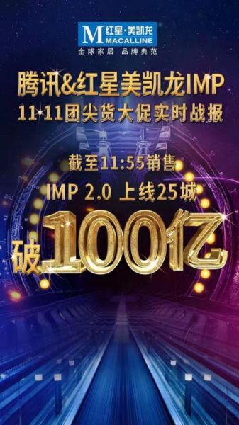截止11月11日11点55分,腾讯&红星美凯龙IMP2.0上线25城,11.11团尖货大促销售突破100亿。11月11日24点,最终红星美凯龙“团尖货”11·11大促全国商场成交额突破160亿元。而在不久前的十一大促中,借助IMP平台,红星美凯龙刚刚创下了106.82亿元的销售业绩。
