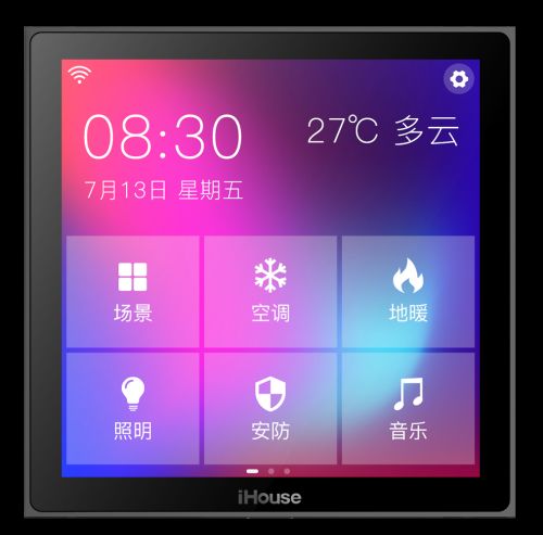 ▲智境全面屏场景面板可以实现全屏液晶触控操作,支持场景、灯控、温控、新风等控制,控制内容更加丰富,交互过程也更加流畅。