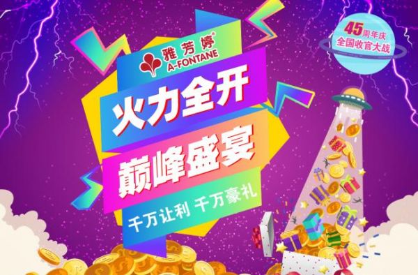 2018年,香港雅芳婷家纺为庆贺其45年历史而推出了一系列周年庆活动。作为周年庆活动的全国收官之战,雅芳婷这一档“火力全开 巅峰盛宴”活动可谓是力度空前,价格触底,11月23日至12月9日期间,全国各地的雅芳婷专柜和专卖店将共同参与,携手联动,全国范围内共计将送出7万件奖品,总值超过1000万。