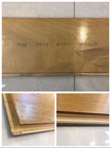 观察地板的每个边角,都十分的规整,无任何毛刺;地板侧面可清晰分明看出五层结构,其多层结构较纯实木地板更稳定,不易变形;地板背面印有这款地板的树种和产品编号,这样可以让消费者更加直观的了解到产品的材质,也更加放心的购买。