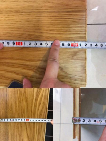 现在小编对这款安信橡木五层实木复合地板进行了一番测量。如上图,这款地板的长度为1220mm,宽度为162mm,厚度为15mm,与厂家出厂规格一致。可见这款地板从工艺、用料、细节上精湛的工艺。