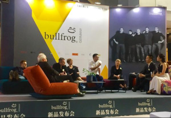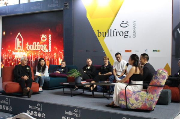 接着,广州品胜家居创始人黄春林,德国牛蛙创始人兼艺术总监Kute beire,德国牛蛙市场销售总监Yang(李小龙),德国牛蛙色彩搭配师Kati wicht,德国牛蛙资深结构设计师汉斯以及中国原创设计品牌-禅意美学家居-自在工坊创始人张军先生等人上台共同参与论坛互动,就牛蛙沙发的设计灵感跟规划,当下流行的趋势以及中西方文化差异如何很好结合运用的交流碰撞。
