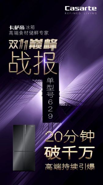 11月11日0时20分,天猫平台传来捷报:卡萨帝冰箱在万元以上高端市场份额居第一,其中仅黑钛系列变频干湿分储T型冰箱这一单型号产品,开场20分钟内零售额已突破千万大关。