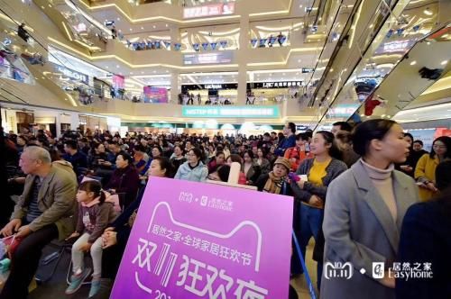 11月11日,居然之家四川区域牵头举行“双11狂欢夜”,落地成都琉璃店。当天客流、销售创下高峰。从早上9:00提前开门,到晚上10点,人流如织。特别是下午4:00开始持续至10点的“狂欢夜”,琉璃店灯火通明,热闹非凡。