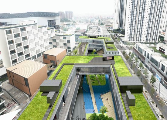 满京华·国际艺展中心的整体规划设计由华人建筑界的泰斗知名建筑大师严迅奇主持,联合伍兹贝格等世界知名设计公司共同精铸的极具设计感与体验性的艺术社区。