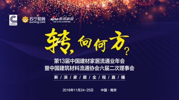 11月24-25日,南京,“第13届中国建材家居流通业年会暨中国建筑材料流通协会六届二次理事会”以“转,向何方”为主题,汇聚行业精英,围绕2018年以来企业遇到的诸多困难、行业面临的挑战与机遇进行深刻的剖析和深入的探讨,助力企业在变幻的商业环境中找准方向、理清思路、找到方法。