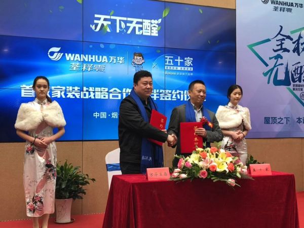 万华生态科技总经理宋仁松则表示,室内空气污染成为危害人们健康的头号杀手,万华多年来致力于从源头上彻底解决室内家居甲醛及苯的污染问题,希望能够为中国家居无醛化做出贡献。在和五十家CEO陈卫先生接触后,相同的无醛家装理念让两人一拍即合,便达成了这次的合作。