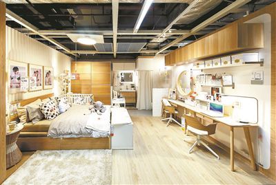 记者之前在一个展示空间内见到如何更好地让家庭办公与卧室相融合,从而既让宝爸宝妈不受打扰的处理工作,又能将办公空间尽量压缩。据了解,该样板房是宜家设计师与一位广州博主联合打造的,将卧室的一个墙面变成结合办公台和化妆台为一体的空间。这位博主介绍,因为她跟先生经常需要用电脑,为了不让孩子打扰,他们会把自己“锁”在房间里办公,让孩子跟保姆阿姨到客厅去玩。但为了保证两个人的相对独立性,最终是在卧室安放了两个长书桌解决,而其中一个书桌上面则摆放了一面镜子,让书桌既可以工作,也可以做化妆台。