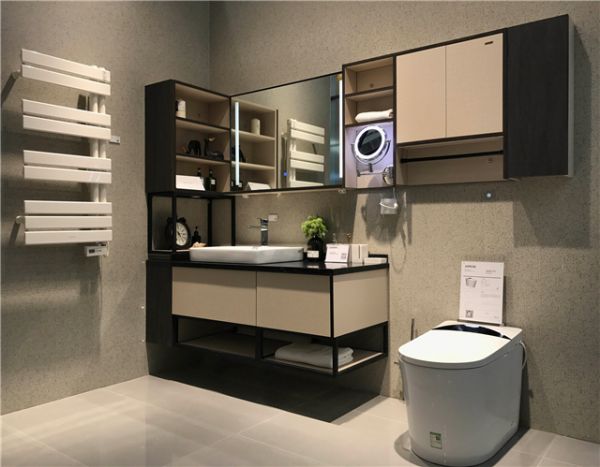 在本届广州设计周中,箭牌卫浴共展出十余款产品,包括智能马桶、淋浴器以及浴室柜。