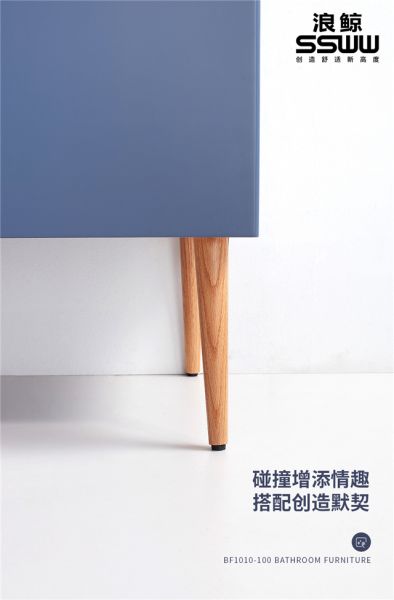 “蓝色爱人”浴室柜是浪鲸“回到北欧”系列浴室柜中的一款,主打颜色是深邃低调的蓝色,搭配木纹边框柜脚,寓意初见时如木纹般原始心动的感觉,回归生活后,沉淀的爱意像蓝色大海一样悠远流长。当木纹碰撞蓝色烤漆面板,本无交集的两种元素奇迹般融合,在爱情的催化作用下,赋予新含义。