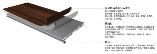 使用竹木纤维/石塑为基材,环保无毒,且产品花色可以实现逼真的石纹、木纹、布纹、墙纸纹、花鸟鱼虫等,是标准模块化产品。