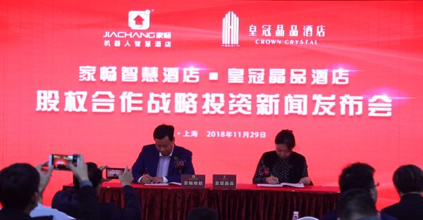 11月29日下午13:30,家畅智慧酒店生态系统2.0新品发布暨皇冠晶品酒店股权合作战略投资新闻发布会在沪盛大举办。