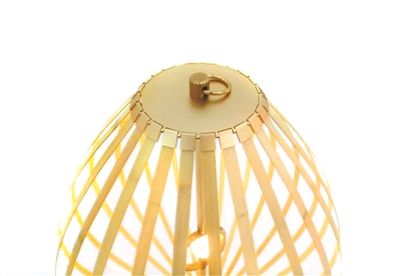 三等奖 提灯 设计师:宋瑞雪 灵感来源于天体仪,设计师采用竹制鸟笼工艺,希望让提灯成为古老工艺的新载体。灯具的主体部分可以旋转,呈现出不同的空间氛围。设计师擅长基于当代设计语境,呈现对中国传统美学的思考。