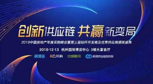 12月13日,由明源云携手中城联采共同举办的“创新供应链,共赢新变局”2018中国房地产年度采购峰会暨标杆开发商及优秀供应商颁奖盛典,将在杭州国际博览中心召开。