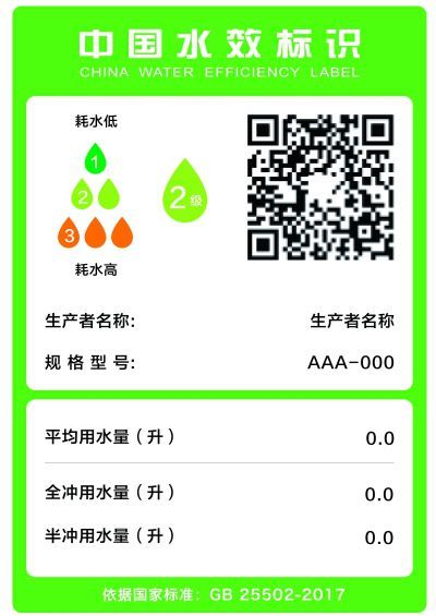 事实上,所谓水效标识,其实和现在我们已经习惯的“能效等级”标识类似,水效标识是附在用水产品上的信息标签,是指采用企业自我声明和信息备案的方式,依据相关产品的水效强制性国家标准检测确定的。该标签上所展示的信息表示产品的水效等级、用水量等性能指标。我国目前的产品水效标准体系中,水效标识中含有水效等级划分,该等级自上而下分为三级,1级显示为一个深绿色的水滴图案,耗水量最低;2级显示为两个浅绿色水滴图案,耗水量较低;3级显示为三个橙色水滴图案,耗水量高。而3级则是产品水效的市场准入值。此外,产品生产者名称、二维码、产品规格型号、平均用水量(L)、全冲用水量(L)及半冲用水量(L)、依据的相应强制性国家标准等信息也在该标识中。另外,标识上的二维码,作为消费者通过扫描二维码可以查看到产品介绍、使用说明书、售后服务、回收置换等内容。地方质检监察部门可以方便查看到产品水效标识备案情况,提高监督执法效率。