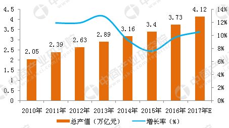 据国家统计局统计数据显示,我国每年新增住房面积超20亿平方米,预计2017年中国建筑装饰行业总产值达4万亿元。此外,根据《国家新型城镇化规划(2014-2020年)》的要求,到2020年,常住人口城镇化率要达到60%左右,人口城镇化能够刺激住房、市政等方面的巨大投资与消费需求,这意味着建筑装饰行业未来前景广阔,预计2020年建筑装饰总需求将达到5.9万亿元。图:2010-2017年中国建筑装饰行业总产值增长趋势图