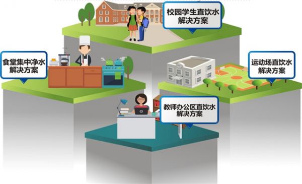 为了响应国家教育部等部门的号召,解决广大师生们的健康饮水问题,立升净水推出了校园全方位净水系统,包括了校园学生直饮水解决方案、食堂集中净水解决方案、运动场直饮水解决方案以及教师办公区直饮水解决方案等等。