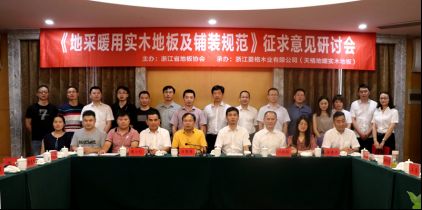 7月21日,浙江省地板协会合同天格,组织国内15家主流地暖实木地板企业在南浔召开了《地采暖用实木地板及其铺装验收使用规范》团体标准征求意见研讨会。浙江省林业厅科技处处长何志华教授级高工、浙江省地板协会徐伟会长、浙江省品牌促进会张丹云高工等领导、专家出席。专家组对《地采暖用实木地板及其铺装验收使用规范》进行了逐项的深入探讨,进一步完善了标准的相关数据及表述准确度、提升了标准的可操作性。