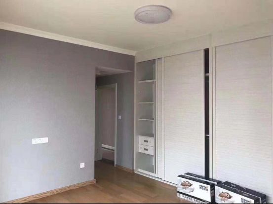 这是胡小姐的主卧?橙家设计师把墙面做了高级灰,衣柜是白色的,也很耐看,而且收纳空间很多,设计很合理,估计再多的衣服也能装得下。胡小姐以前租房最烦恼的就是衣柜太小,衣服特别乱,新房就很在意衣柜设计,橙家设计师都给我做到了。