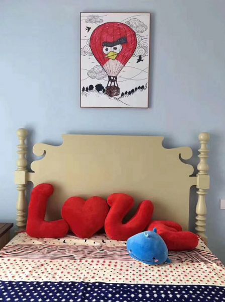 胡小姐有一个小房间做了儿童房,橙家设计师把墙面也做成浅灰蓝色,和整体色调一样。刚好胡小姐家的也是男孩子,蓝色正合适呢。