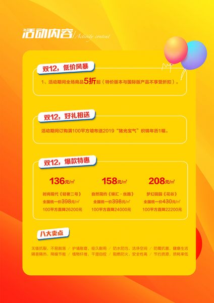 2、活动期间订购满100平方墙布送2019“猪光宝气”织锦年历1幅。