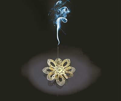 集合了故宫帝王印和佛教里极具象征意义的浮莲,用双层不同装饰语言的花瓣翻折,契合“并蒂”之意,这个名为“一花一世界”的香插既古典,又现代。中心可放置烛台,按孔可任意插香,繁密的纹理,仿佛无处不在的光辉与虔诚。