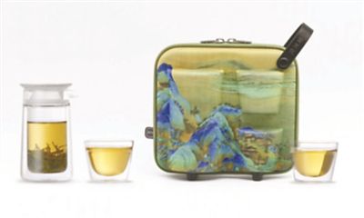 故宫博物院在谈起“紫禁城生活美学”这件事儿上,最有发言权。这套月影随身装茶具,就是故宫博物院现藏《千里江山图》的现代化呈现。把一幅宋代青山绿水图印在一壶两杯的收纳包上,使高雅艺术不再高高在上,历史名画就这样走进了我们的日常生活。