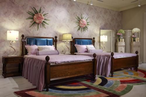 不需要多做布置的双人儿童房,一边一个床就好了,但需要注意一点,如果男孩和女孩住在一个屋,还是有很多不便的,中间可以设置一个帘子,保证私密性。
