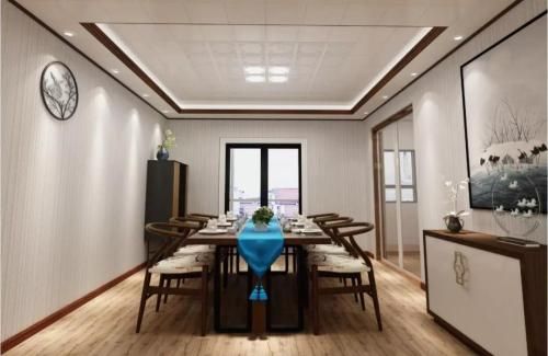 异型吊顶采用的云型波浪线或不规则弧线,一般不超过整体顶面面积的三分之一,超过或小于这个比例,就难以达到好的效果。