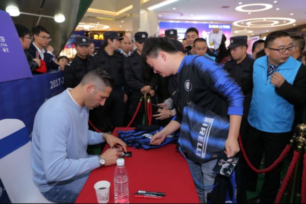 传奇足球降临现场,业主及球迷肯定不会放过这个千载难逢的机会,更有疯狂的足球球迷晚上12点多到机场欢迎足球传奇巨星马特拉齐的到来,机场一度成为他们狂欢盛宴。与球星零距离接触,他们都表现得无比的喜悦。在活动现场,为了让更多的人与球星互动,设置多个互动环节,与球星进行接球、传球、射门,一次次把活动推向高潮。活动一直火热地维持了2个小时,马特拉齐还热情地跟现场的观众和球迷进行签名、合影。