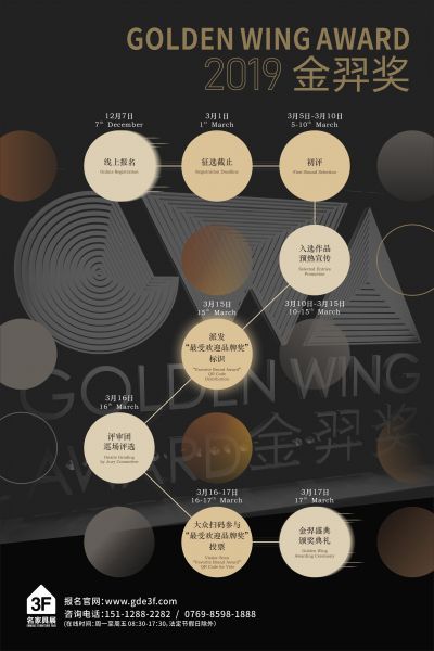 6. 报名截止时间为2019年3月1日17:30,登录名家具展官网www.gde3f.com,进入“金羿奖” 报名系统即可报名参评(最受欢迎品牌奖、新锐设计奖无需进入该系统进行参评)。