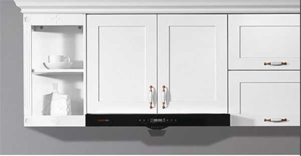 多功能组合吊柜设计,可为不同外形、大小的物品提供分类储存空间,还可将厨房烟机嵌入吊柜,完美隐藏厨房电器的痕迹,化繁为简的设计保持了厨房空间的整洁,外观设计也更和谐统一。