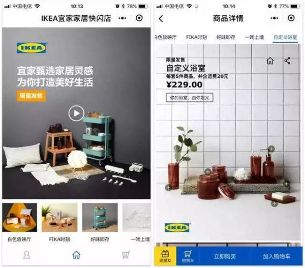 今年8月,宜家与微信小程序团队合作测试了一个快shan店,限量销售5组商品套装,覆盖从咖啡、电影、零食到收纳等场景,价格从149元到499元不等。那次尝试之后,它计划再次推出新的快shan店。按照微信开放平台行业负责人于洪潇当时对《第一财经周刊》的说法,宜家正在和小程序合作实体门店的数字化改造,其中包括“消费者可以在线下门店里用小程序扫描商品,然后在回家后再打开小程序时仍能看到这些商品”,下一步很可能就是直接通过小程序完成对商场商品的下单。