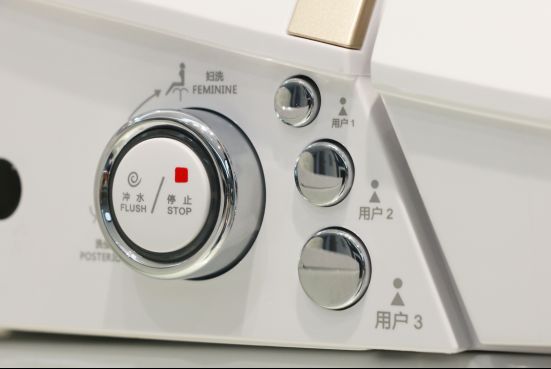 这款马桶摒弃了复杂的操作面板,将妇洗、洗便、冲水、停止键集中在一个旋钮上,顺时针旋转旋钮开启妇洗功能,逆时针旋转则开启洗便功能,垂直按下旋钮即可打开冲水开关冲洗马桶,这一设置大大地简化了功能按键的操作。