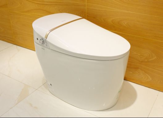 这款马桶的外观比较小巧,机身为纯白色,搭配金色装饰带,整体给人一种优雅灵动的感觉,且手感细腻,风格百搭,可以轻松hold住不同的家装style。同时,马桶釉体经过高温一体烧制,吸水率较低。