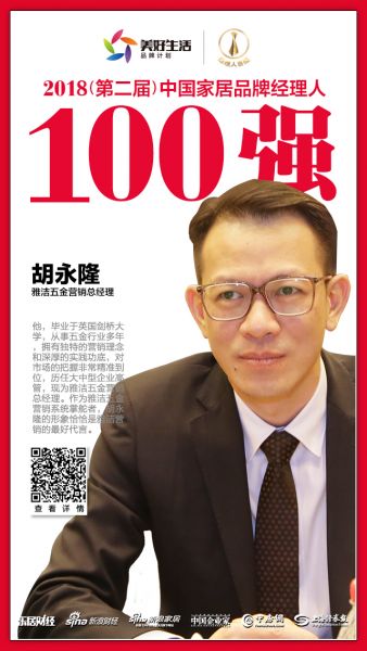快讯丨雅洁五金胡永隆荣获2018中国家居品牌经理人100强