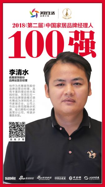 快讯丨名雕装饰股份李清水荣获2018家居品牌经理人100强