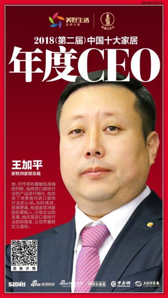 快讯丨家欧洲家居王加平荣获2018中国十大家居年度CEO